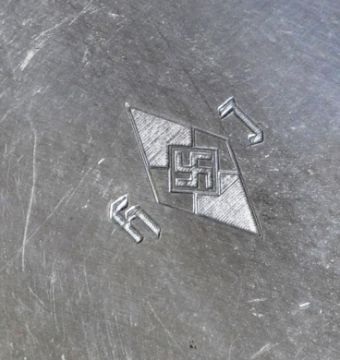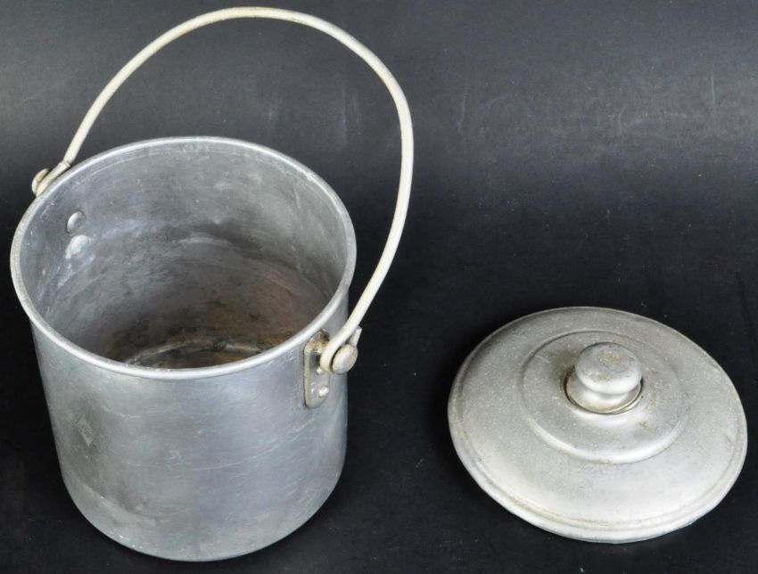 A WWII Second World War Third Reich Nazi German related Hitler Youth Billycan / cooking pot. Lightweight metal construction with a small Hitler Youth badge engraving to the side of the can. Measures approx 14x10cm.