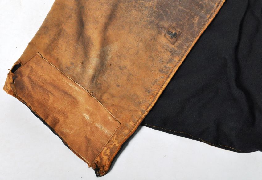 An original 1945 dated WWII Second World War British Army brown leather jerkin. The single-breasted, four-buttoned, sleeveless jerkin having soft brown leather outer. The inside is textile lined with makers label ' M Belmont & Co Ltd ' sewn to the inside lining. Broad arrow marked and March 1945 dated.