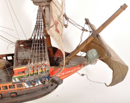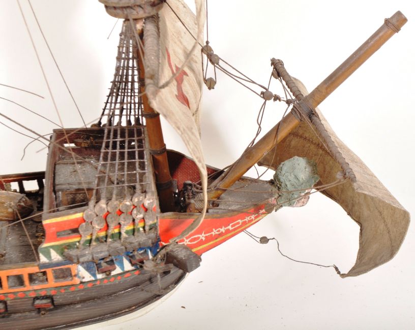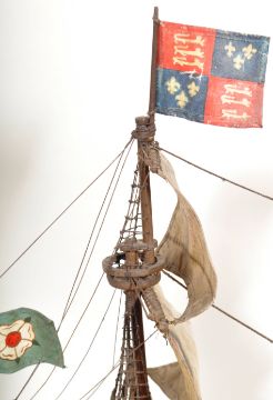 A large early 20th Century museum quality scratch built model of King Henry VIII's 16th Century Flagship boat The Mary Rose. Highly detailed with four masts, various sails & rigging, dozens of canons and other small details. Overall in good condition with some wear in places and some minor details may be missing. A great example. Measures approx; 70cm x 90cm.The Mary Rose is a carrack-type warship of the English Tudor navy of King Henry VIII. She served for 33 years in several wars against France, Scotland, and Brittany. After being substantially rebuilt in 1536, she saw her last action on 19 July 1545
