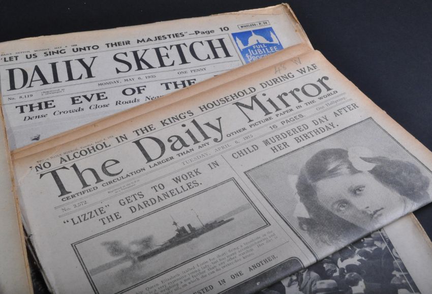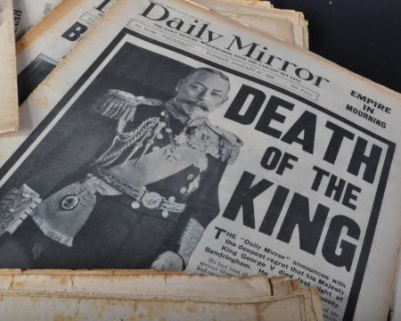 Newspapers - a large collection of 30+ assorted 1930s to 1940s newspapers, dealing with many of the notable headlines from those eras. Includes; Death Of George V, Edward VIII appointment and abdication, R101 Zeppelin / Airship crash, death of George VI, appointment of Queen Elizabeth II, The Coronation, War headlines, Victory and others. Mostly tabloids, but a good quantity local Bristol / South West newspapers. Mostly full issues, some just covers only. No reprints, all genuine printings.