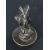 A 20th century Champagne bottle stopper having an Alpine Ibex atop a rocky outcrop to the stopper. Stamped Chamonix to the rim. Measures 10cm high.