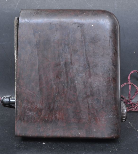 A vintage 20th Century 1940's bakelite Bush radio type DAC. 90 having central round speaker with tuning and volume knob below with tuning window atop.