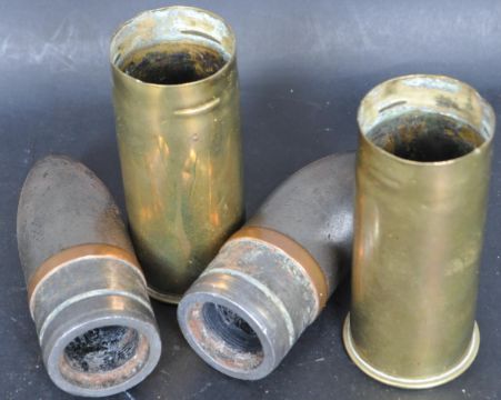 A pair of World War One / WWI trench art artillery shells. Measures 17cm. Stamped Sept 1918 SP255 - 119A.  Measures 16cm tall.
