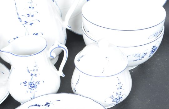 A vintage retro mid 20th century German ceramic porcelain tea service / dinner service by Villeroy & Boch. The service comprising of serving plates, cups, saucers, bowls, teapot, etc. Makers mark to the underside. Measures 23cm tall.