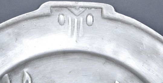 An early 20th century WMF style pewter plate having a central panel of a two embossed horses heads with Art Nouveau motifs to the edges. The plate having a George V stamp / GR to the reverse Measures 37.5m wide
