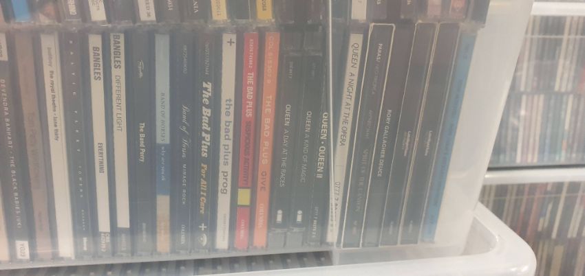 A large collection of CD's  ( compact discs ) to include many genres, artists and labels having come from a private collectors / enthusiasts library. The box containing approximately 200 CD's to include artists, but not limited to: Everything But The Girl, Eagles, Bob Dylan, David Bowie, The Jam, Roxy Music, Joni Mitchell, Beatles, The Bangles, Queen, Rory Gallagher, Late Night Tales, Jeff Beck. Brand X, Rufus Wainwright, Paul Simon, Peter Banks and many more.