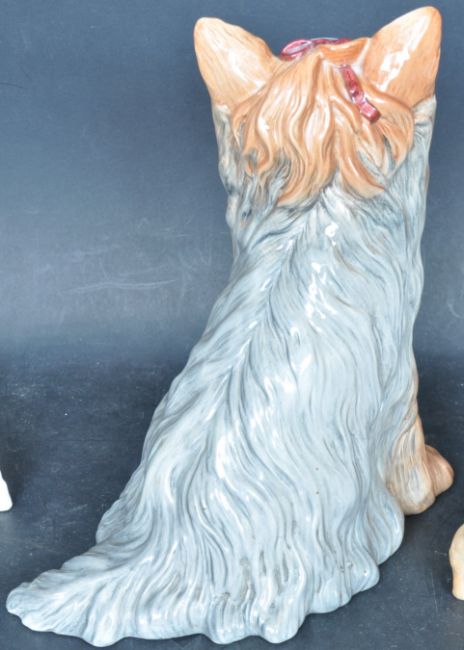 A collection of vintage 20th century Beswick china ceramic dog figurines to include a large fireside terrier, a Dalmatian, a beagle, a springer spaniel and more. Measures 25cm tall.