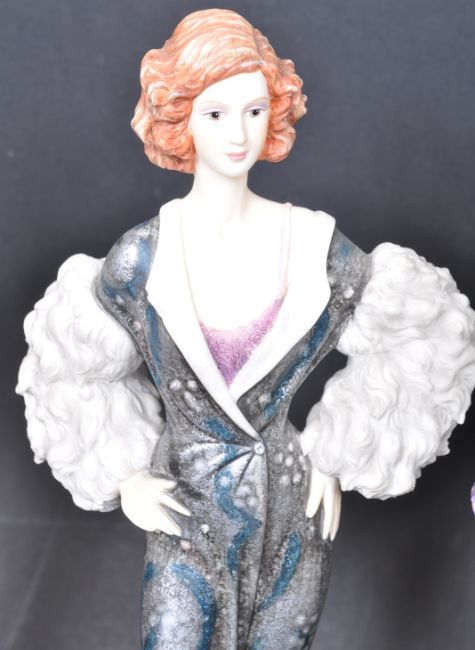 A collection of contemporary porcelain and other figurines, comprising of a Royal Worcester 2006 Queens 80th Birthday porcelain figurine, set of four Regal figures including Amanda PO15, Janice PO19, Prudence PO23, Gemma PO16 & more. Measures 28cm tall.