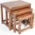 A 20th century Campaign style mahogany and brass bound nest of tables. Raised on squared legs united by stretchers having graduating table tops and finished with brass bound corners. Measures 50cm H x 56cm W x 38cm D