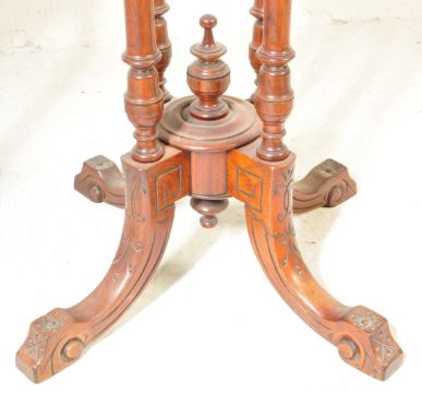 A 19th century Victorian oak Arts & Crafts bobbin table. Raised on tall bobbin legs with squared table top above. Together with a victorian 19th century mahogany occasional table of octagonal form having 4 column turned supports with splayed legs to base. Measures approx. 73cm x 38cm x 38cm
