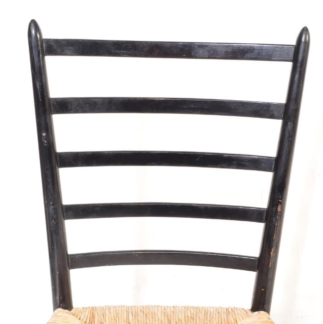 Manner Of Gio Ponti - A pair of vintage retro 20th century circa 1960’s dining chairs by Italian Potpourri Gerdau. The chairs having black painted hardwood frames with envelope type rattan seats. Measures approx. 90cm x 41cm x 36cm