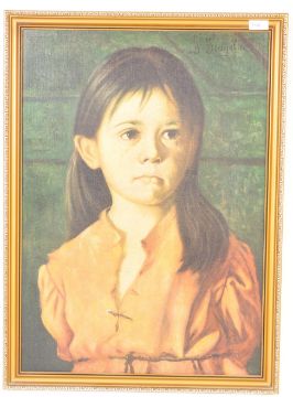 After Giovanni Bragolin - A retro vintage mid 20th century circa 1960s print by Boots of a young crying girl set within a gilt frame. Makers label to the reverse. Measures approx. 77cm x 57cm.