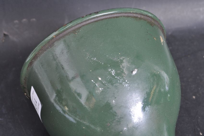 Mek-Elek - A retro vintage early to mid 20th Century industrial factory desktop work desk anglepoise lamp light of stylish rustic form. The light having a green enamel pendant shade connecting to polished metal adjustable arm upon a cylindrical stem.