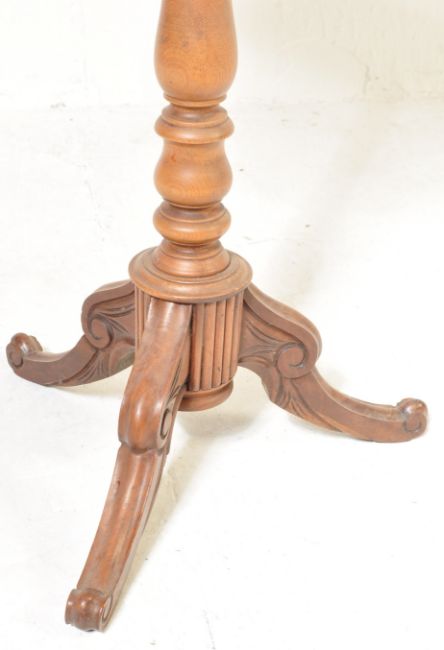 A Victorian 19th century starburst inlaid walnut pedestal wine table. Raised on splayed legs with turned column having starburst inlaid circular table top above. 73cm h x 46cm w x 46cm d