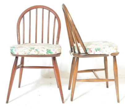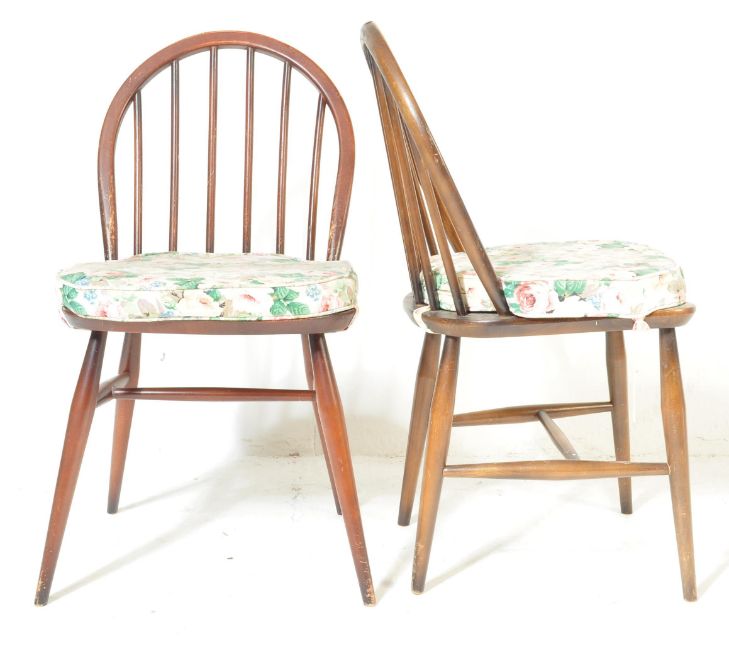 Lucian Ercolani - Ercol - Windsor - A set of  6 20th Century retro vintage beech and elm  hoop back chairs, all in the dark colour way being raised on turned legs united by stretchers with saddle seats.