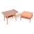 Two vintage retro mid 20th century teak wood coffee tables / occasional tables. A surfboard top coffee table raised on angular legs and a rectangular coffee raised on shaped supports. Measures approx. 49cm x 67cm x 46cm
