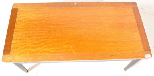 G Plan - Librenza - A retro vintage mid 20th century tola wood coffee table of rectangular form having an ebonised base with upright supports. Measures approx. 41cm x 100cm x 49cm.
