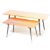 A vintage retro 20th century Danish inspired teak wood long John coffee table having shaped top of with raised edges, magazine rack underneath raised on tapered supports being together with another.