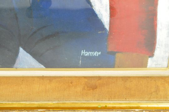 Hamer - An oil on board portrait painting study of a young boy seated wearing a red jumper with open collar shirt. Signed to the lower right Hamer - Framed and glazed. Painting measures approx; 900mm x 590mm. Frame measures approx; 105cm x 75cm.