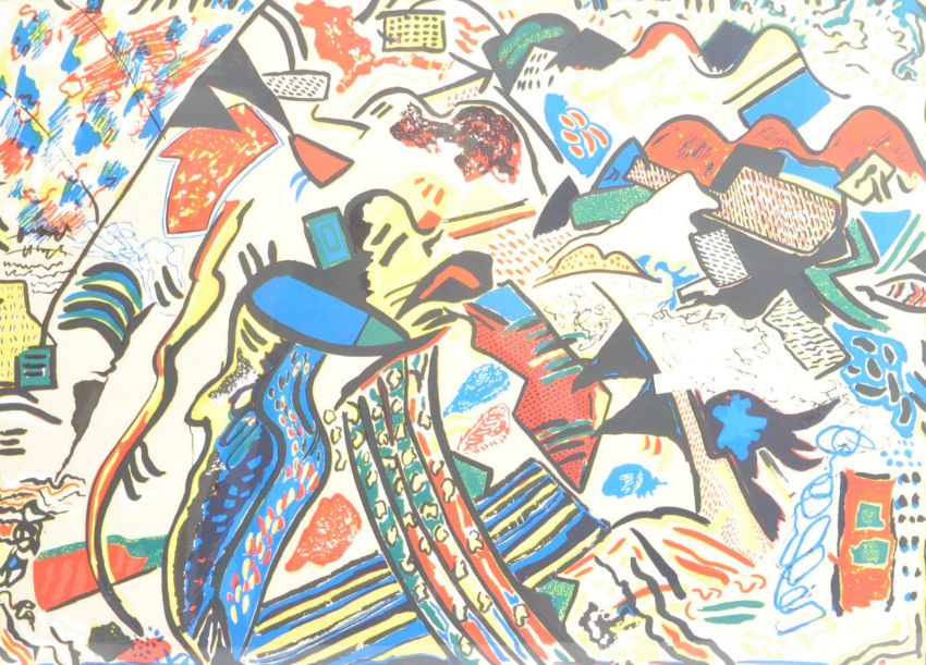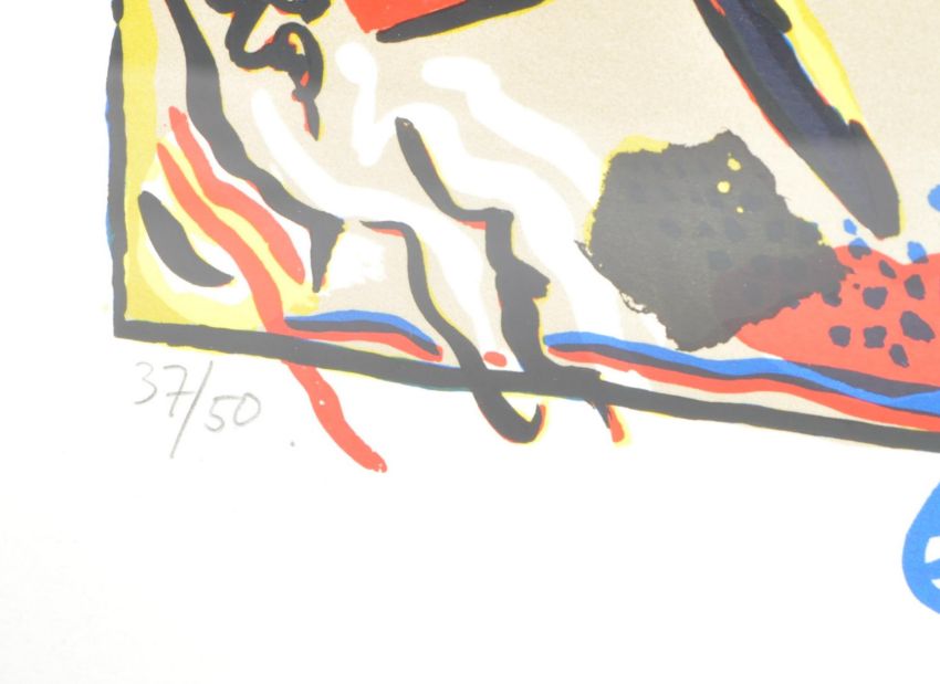 Renos Loizou (Greek 1948-2013) - Composition I - A signed limited edition abstract screen print in colours entitled 'Composition I'. Signed and titled in pencil by the artist and dated 1984. Limited edition 37/50. Framed and glazed. Print measures approx; 1210mm x 920mm. Frame measures approx; 131cm x 102cm.