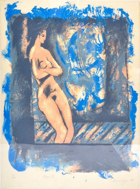 Renos Loizou (Greek 1948-2013) - Figure I - A signed limited edition abstract screen print in colours entitled 'Figure I' depicting a lone nude female. Signed and titled in pencil by the artist and dated '84. Limited edition 1/50. Framed and glazed. Print measures approx; 760mm x 570mm. Frame measures approx; 107cm x 86cm.