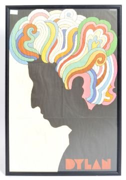 Milton Glaser (1929 - 2020) - A 20th Century 1966 Bob Dylan musical advertising poster print in colours depicting a side profile of Dylan with psychedelic hair. All being framed and glazed. Poster measures approx; 830mm x 550mm. Frame measures approx; 88cm x 59cm.
