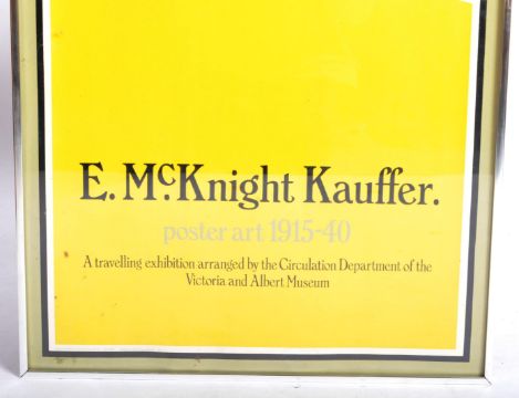 E. McKnight Kauffer (1890 - 1954) - A framed and glazed poster art 1915-40 exhibition advertising poster for McKnight Kauffer on show at the Victoria & Albert Museum (V&A). Printed by HMSO By Swindon Signcraft. Poster measures approx; 750mm x 490mm. Frame measures approx; 77cm x 51cm.