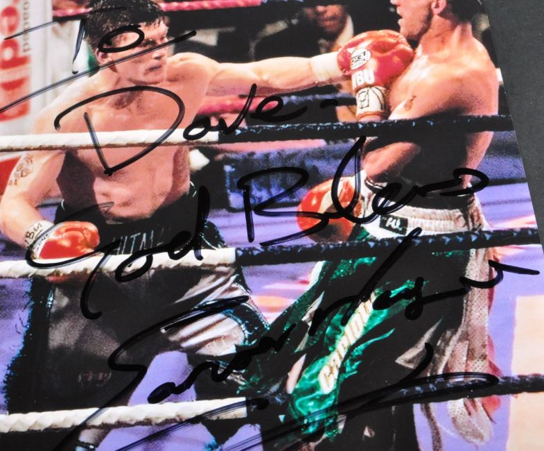 Estate of Dave Prowse - Sporting Autographs - a collection of x8 autographed 8x10" photographs from various sport personalities, to include; Phil Taylor (Darts), Robert Thomas (Dallas Cowboys Football), x2 Motorcycle riders (autographs unknown), Paul Hunt (Motocross), Eamon Magee (x2 - Boxer), and Bill Bates (Superbowl). All dedicated to Prowse is some way. Each obtained personally by Prowse.