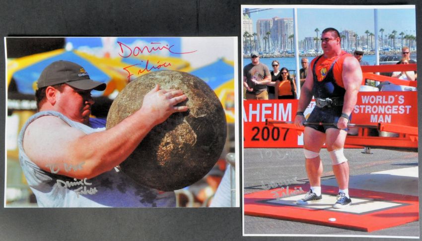 Estate of Dave Prowse - Dominic Filiou (1977-2019) - World's Strongest Man - x2 autographed 8x12" colour photographs, both dedicated ' To Dave '. One photograph double signed. Obtained personally by Prowse.