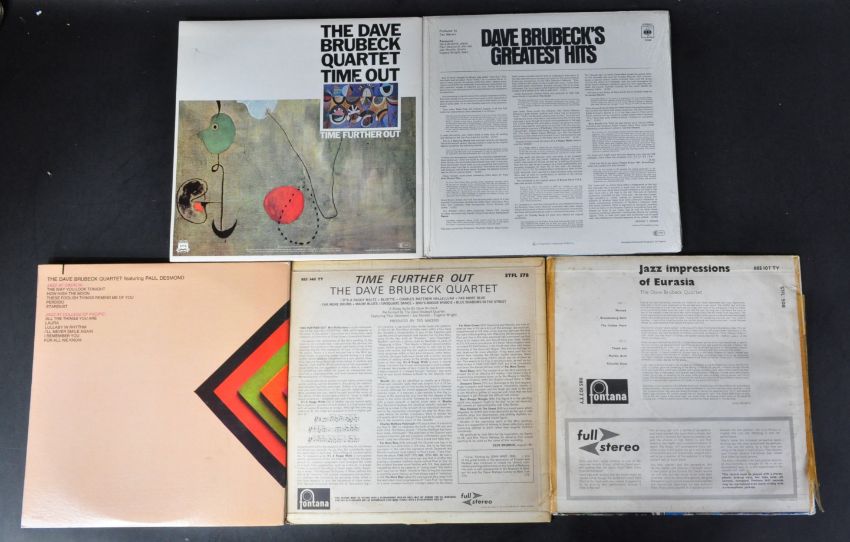 The Dave Brubeck Quartet - A selection of five long play LP vinyl record albums to include Time Further Out (Stereo Fontana 885 148 TY, VG), Jazz Impressions Of Eurasia (Stereo Fontana 885 107 TY, VG), The Art Of Dave Brubeck The Fantasy Years (American Stereo Atlantic SD 2-317, VG+), Greatest Hits (CBS Stereo S CBS 32046, VG+) and Time Out (Stereo CBS 22120, VG+).