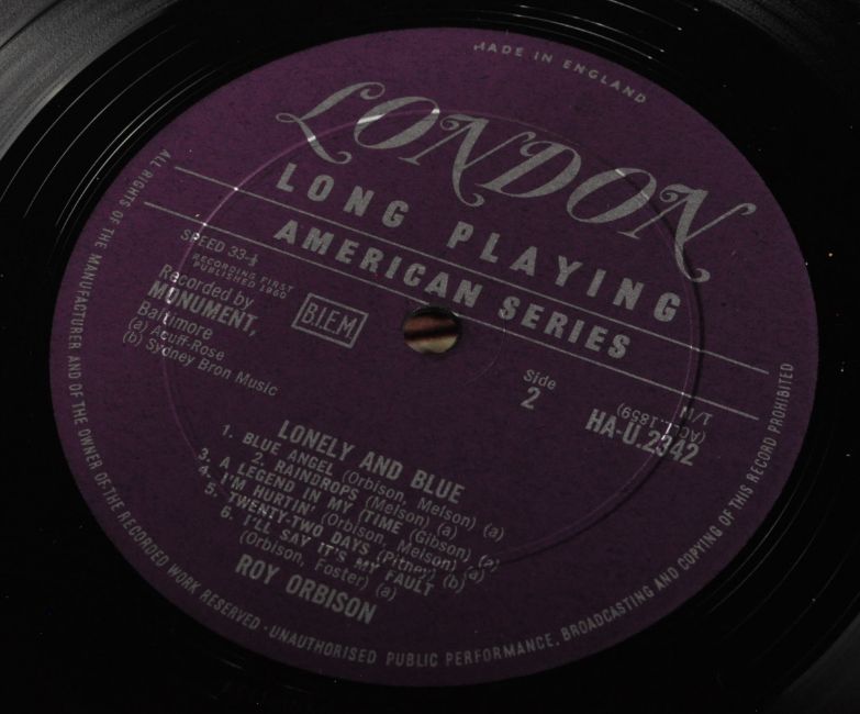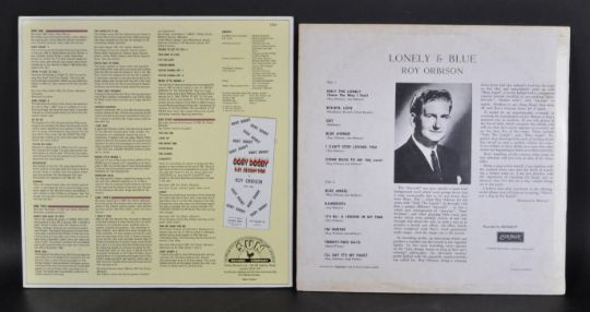 Roy Orbison - Two long play LP vinyl record albums to include Orbison Sings Lonely And Blue (Mono London label first pressing HA-U 2342, VG+ condition) and The Sun Years (Sun Record label, CDX-4, NM condition).