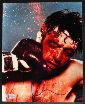 Robert De Niro - American Actor - Raging Bull - a scarce autographed 8x10" colour photograph from the classic boxing related movie. Signed by De Niro in black ink to a central area of the image. Supplied with Beckett authentication. Iconic and gruesome image from the movie.