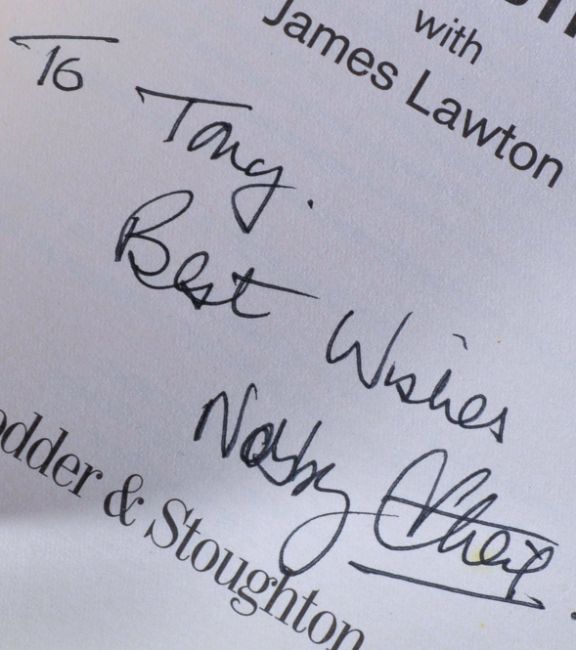 Autographs - a collection of x4 autographed autobiographies, the books all signed by the relevant author. Includes; Jane Fonda, Nobby Stiles (Footballer 1942-2020), Dame Barbara Windsor (Carry On films - 1937-2020) and Andy Williams (Singer - Moon River - 1927-2012). All signed to the title pages. Mix of dedicated and undedicated. All obtained personally by the vendor from various book signings.