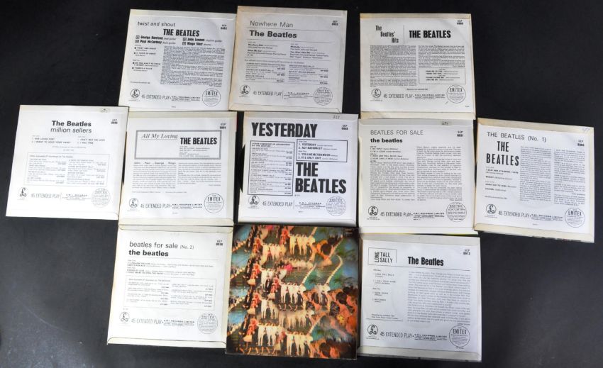 The Beatles - A collection of eleven 45rpm 7” vinyl EP's (Extended Play) to include Twist and Shout, The Beatles' Hits, Nowhere Man, The Beatles No.1, Beatles For Sale, Beatles For Sale No.2, All My Loving, Yesterday, Long Tall Sally, Magical Mystery Tour and The Beatles' Million Sellers. Each on Parlophone and each having a picture sleeve. Sleeves in VG to VG+ condition. EP's in VG condition.