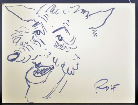Rolf Harris - The Sly Fox - Portrait of Sir Jimmy Savile in the guise of a fox. Drawn with elongated nose, furry head and ears to top. Signed in the corner ' Rolf '. Measures approx; 39cm x 53cm.