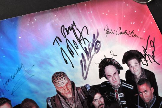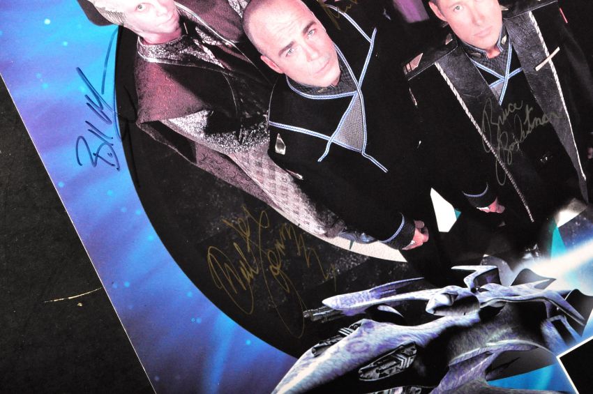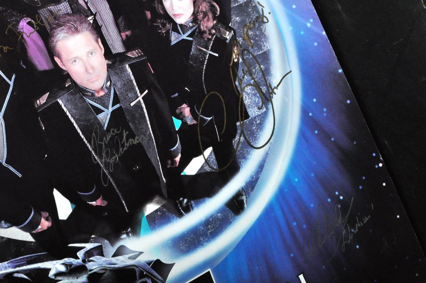 Babylon 5 - American Sci Fi Series - a large format cast signed poster, autographed by x17 of the cast. Signatures include: J. Michael Straczynski (Creator), Jason Carter, Bruce Boxleitner, Claudia Christian, Julia Caitlin Brown and others. Mostly undedicated (x2 dedicated. All obtained in person by the vendor at various comic-con events. Rolled. Measures approx; 60cm x 42cm.