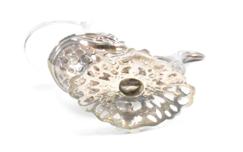 A group of silver items to include a 19th Century Victorian Thomas Johnson 1876 London hallmarked tre foil cruet stand with engine turned details, a silver table salt in the form of a maltese dolphin and a middle eastern silver menu holder with an easel back. Dolphin marked silver 835 and measures 7cm tall, menu holder unmarked but tests indicate silver and measures 5cm tall. Weight 126.4g.