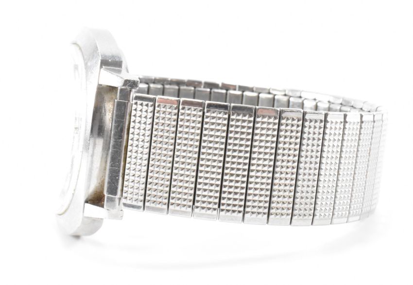 A Seiko Automatic 17 jewels stainless steel wrist watch. The watch having a round face with baton markings to the chapter ring with day date aperture to three on a expandable stainless steel strap. Case measures 38mm.