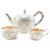 A 19th century Victorian silver hallmarked 3-piece tea service comprising teapot, sugar bowl and creamer jug. The set having arched shaped panels with engraved foliate detailing. The Tea pot hallmarked London marks are  worn. The creamer and bowl  hallmarked for Edinburgh 1894, sponsors mark for James Rettie & Sons of Aberdeen. Weight approx 380.4g. Tea pot measures 12cm tall, sugar bowl measures 4cm tall.