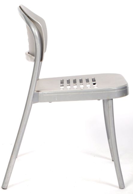 Vico Magistretti - Kartell - Mauna Kea - A retro vintage 20th Century side chair / desk chair having shaped tubular frame with pierced back and seat in silver. Measures approx; 75cm x 46cm x 44cm.