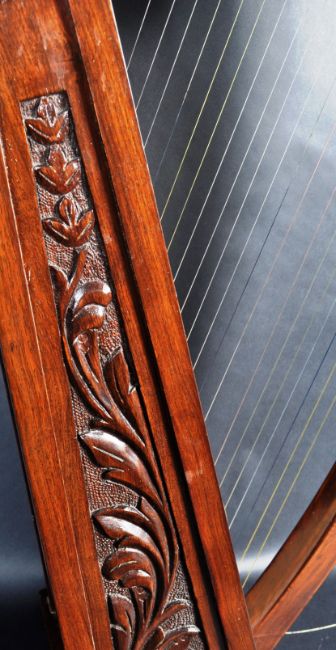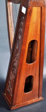A retro vintage 20th Century Irish / Celtic carved wood 22 string harp. The harp of traditional form with carved flowers and 22 string fixing holes. Measures approx; 77cm x 42cm x 22cm.