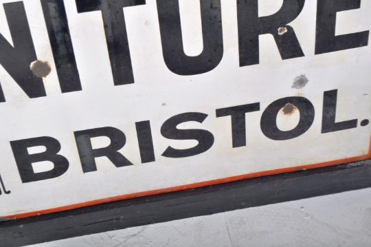 Newbery's Furniture - Bristol - an original early local interest enamel shop advertising sign for the furniture company in Bristol. 'Carriage Paid'. White, with black and red text. Framed. Measures approx; 103cm x 134cm.