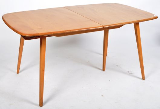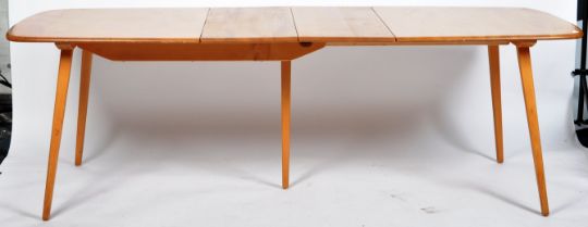 Lucian Ercolani - Ercol - Grand Plank - A large retro vintage mid 20th Century beech and elm extending dining table having an elm rounded edge rectangular top with extending leaves stored within. All raised on beech tapering splayed supports with central extra leg. The Grand Plank table comes with two part hinged leaf. Good condition throughout. Fully extended measures approx; 73cm x 225cm x 90cm.