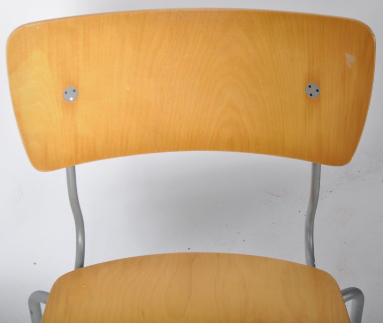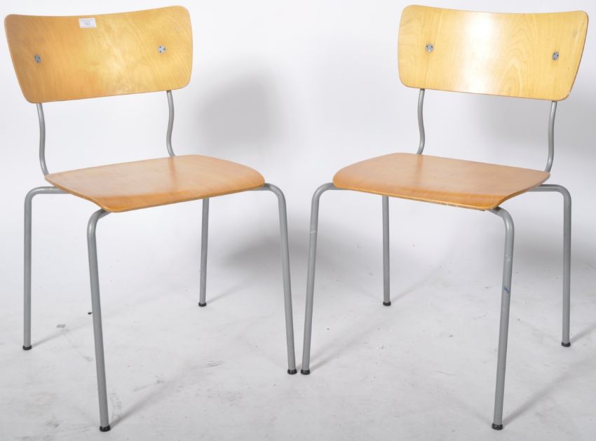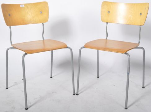Believed Piiroinen - A pair of retro vintage 20th century bentwood & ply framed dining / sides / desk chair having a shaped bentwood frame with ply seat and back. Measures approx; 76cm x 44cm x 41cm.