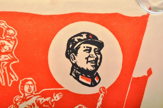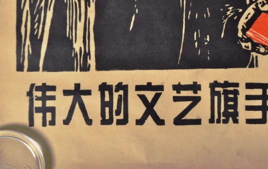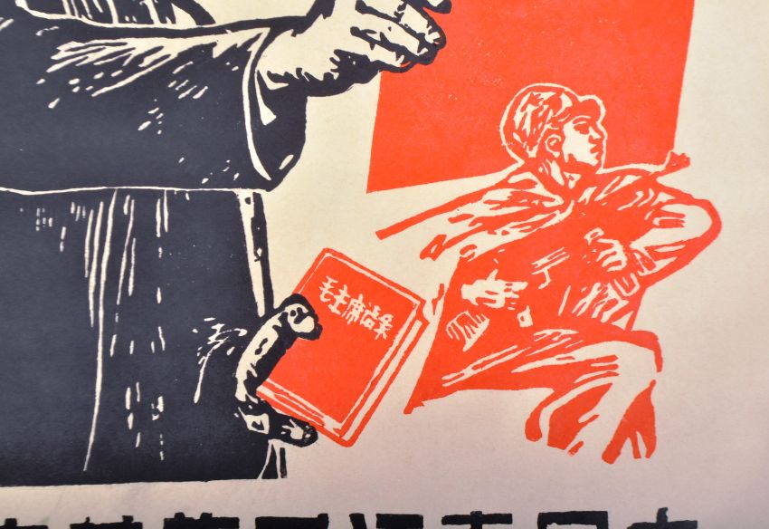 A vintage 20th Century 1960's Chinese Cultural Revolution propaganda poster "Let the new socialist performing arts occupy every stage", printed in black and red Measures approx; 77cm x 53cm.