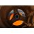 A retro vintage 1960's studio art glass lamp light in the manner of Holmegaard in brilliant vibrant tangerine orange colourway. The light fittings raised on cylindrical neck and raised on a wide waisted base. Hessian and carved wood drum shade. Measures approx; 60cm x 25cm (including the shade).