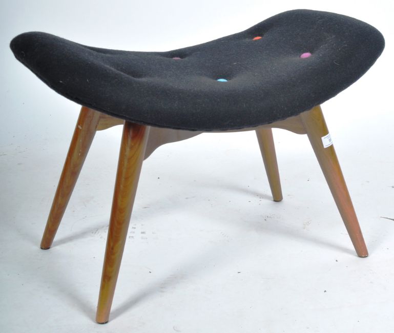 Finn Juhl (Manner Of) - A contemporary footstool ottoman - window seat being raised on tapering turned legs with black fabric upholstered frame with multi coloured button backing. Measures approx; 40cm x 65cm x 40cm.