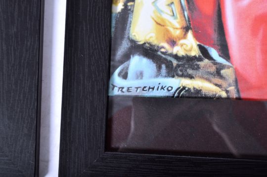 Vladimir Tretchikoff - A group of three contemporary framed and glazed prints in colours of some of Tretchikoff's most famous pieces. Prints include 'Balinese Girl', 'Miss Wong' and 'Lady of the Orchids'. Each set within a black frame. Each measures approx; 75cm x 53cm.