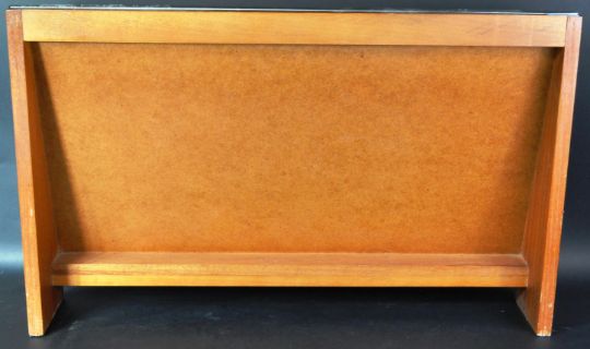 A retro vintage mid 20th Century teak wood space age dressing table / shop display mirror. The teak angular box frame with sloped mirror to the front. Solid teak wood frame. Measures approx; 44cm x 71cm