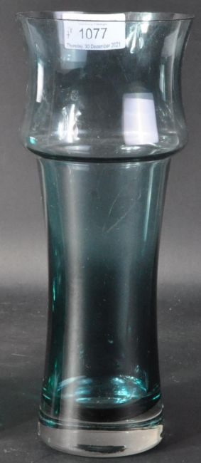 Riihimaki / Riihimaen -  Two retro mid 20th Century Finnish Scandinavian design studio art glass vases of one in grey and the other turquoise colour. Tallest measures approx; 25cm x 10cm diameter.